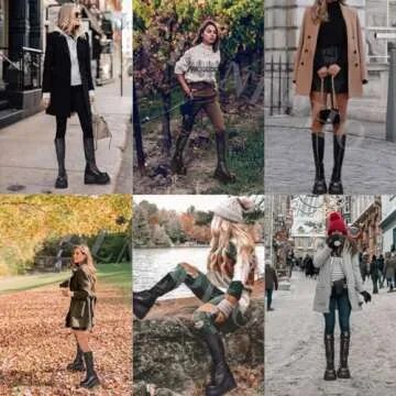 CELNEPHO Womens High Platform Mid Calf Wedges Chunky High Heel Round-Toe Side Zip Punk Combat Boots For Women