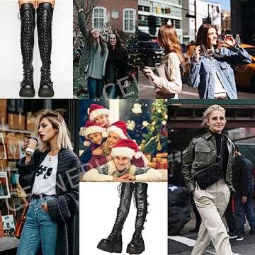 CELNEPHO Womens Wedge Platform Over The Knee Boots Chunky High Heel Side-Zip Lace-Up Motorcycle Riding Boots Combat Boots For Women