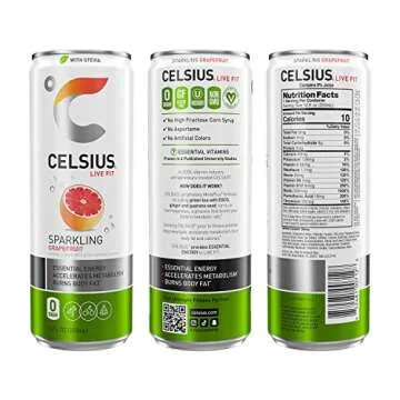 CELSIUS Sweetened with Stevia Sparkling Grapefruit Fitness Drink, Zero Sugar, 12oz. Slim Can (Pack of 12)