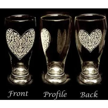 Celtic Knot Heart Pint Glass - Free Personalized Engraving, Heart beer glass