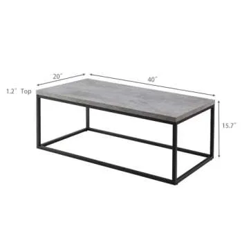 CENSI 40-Inch Concrete Coffee Table End Table for Living Room, Rectangle, Modern Industrial Style, Extra Thick Top, Wood and Metal (Grey Marble)