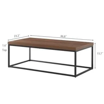 CENSI Walnut Coffee Table for Living Room, 47" Modern Industrial, Rectangular Wood and Metal Coffee Table with Extra Thick Tabletop (Dark Walnut)