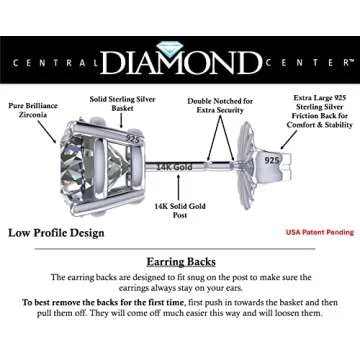 Show moreIntroducing the Central Diamond Center 14K Solid Gold Post & Sterling Silver 4 Prong CZ Stud Earrings, a remarkable fusion of elegance and affordability that you’ll never want to take off. Crafted with precision, these stunning earrings feature hypoallergenic materials, making them safe for sensitive ears while offering a luxurious look. Each piece is designed with gorgeous simulated diamond studs made from Solid 925 Sterling Silver and plated with Platinum, creating an eye-catching shine that rivals real diamonds.