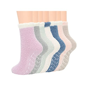 Century Star Cozy Anti Slip Plush Socks for Women - 7 Pairs Multicolor