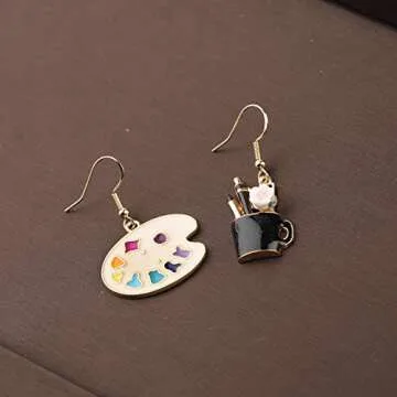 CENWA Colorful Artist Paint Palette and Paint Brush Pendant Drop Earrings Painter Artist Jewelry Gift for Art Teacher Art Student (Artist earrings mix)
