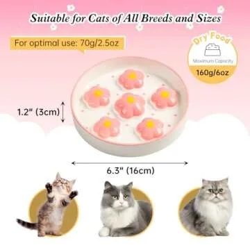 Ceramic Cat Slow Feeder Bowl - 6 OZ Puzzle Food Dish for Healthy Eating - Shallow Wide Whisker Friendly - Dishwasher Safe - 6.3 x 1.2 Inch - Blush Pink Flower