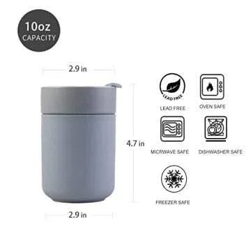 Ceramic Coffee Mug, Reusable Insulated Coffee Cups with Lids Cute Travel Mugs Protective Silicone Sleeve, 10 Ounces, To Go Mug for Coffee Tea Portable Office or Home Cups Dishwasher Safe (blue)