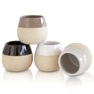 Show moreIndulge in a delightful coffee experience with the exquisite Amarcado Ceramic Espresso Cups. These beautifully designed cups do more than just hold your espresso; they elevate your coffee ritual into a sensory experience, enveloping your senses in the warm embrace of caffeine and aesthetics. The unique dual-textured design features a glossy upper portion glazed to perfection, paired with a distinctively rough sandy lower section that creates a visually stunning contrast. Each cup is available in a range of sophisticated colors such as white, black, grey, and a clear brown blended with sandy beige tones, making them a striking addition to any setting.