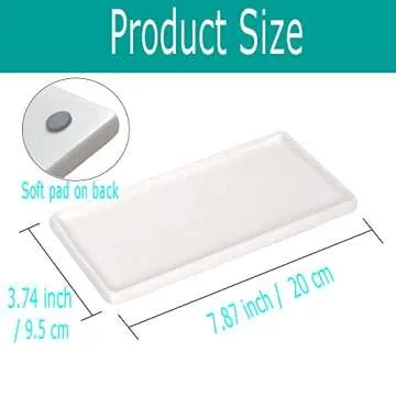 Show moreIntroducing our Ceramic Soap Dispenser Tray, the ultimate solution for keeping your kitchen and bathroom space organized and elegant. Crafted with a sleek and minimalist design, this creamy white ceramic tray effortlessly blends into any decor style, be it modern or farmhouse. Measuring 7.87 x 3.74 x 0.59 inches, it is the perfect size for accommodating your hand soap, dish liquid, and scrubbing essentials, while adding a touch of sophistication to your sink area.