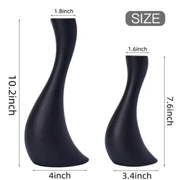 Ceramic Vase 10.2+7.6 Inch Set of 2, Handmade Modern Decorative Vase Black Unique Rustic Flower Vase Table Mantel Living Room Décor