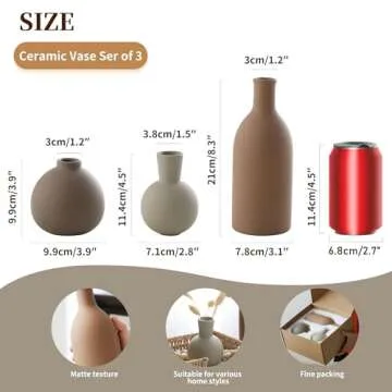 Ceramic Vase Set of 3, Vases Home Decor Rustic Vase Farmhouse Decor Vase Terra Cotta Pottery Vases for Bouquet Pampas Grass Dried Fresh Flowers, Living Room, Kitchen, Bedroom, Entryway Decor- Brown