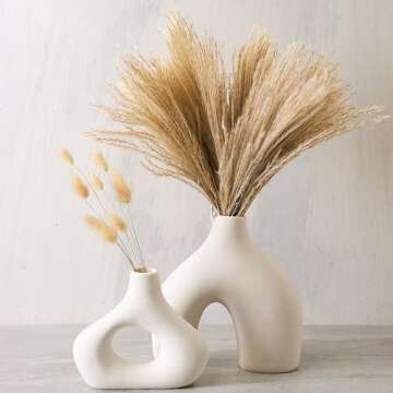 Show moreTransform Your Space with These Elegant Ceramic Vases! Our exquisite set of two white ceramic vases is an ideal addition to your home decor, embracing the modern farmhouse aesthetic with a touch of sophistication. Crafted from premium stoneware, these vases are not just beautiful but highly durable, designed to withstand everyday wear and tear. With dimensions of 7.8 inches in height for the large vase and 5.4 inches for the medium, they are perfectly sized to showcase your favorite tall flowers such as pampas grass and elegant roses. Their striking white matte finish gives a clean and stylish look, making these vases the perfect centerpiece for any room—from your rustic living room to an elegant office space.