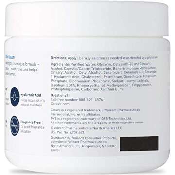 Show moreIf you're in search of a hydrating solution that works wonders on both your face and body, look no further than the CeraVe Moisturizing Cream. This luxurious cream is specifically designed for normal to dry skin, expertly formulated with Hyaluronic Acid to attract moisture, and enriched with three essential ceramides to restore and maintain your skin's natural protective barrier. As a versatile product that meets the demands of dry skin, it’s your go-to moisturizer that promises deep hydration, all day long. Suitable for sensitive skin, this cream offers a non-comedogenic, fragrance-free, and paraben-free formula that makes it ideal for everyone. Each 16 oz jar is packed with skin-loving ingredients that work synergistically to deliver visible results, making your skin feel soft, smooth, and nourished.