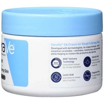 Show moreDiscover the transformative power of the CeraVe SA Cream, a 12-ounce renewing salicylic acid body cream expertly formulated for rough and bumpy skin. This dermatologist-recommended moisturizer penetrates deeply to deliver lasting hydration while gently exfoliating to reveal a smoother texture. CeraVe understands the nuances of skin health, which is why this product features a blend of essential ingredients.