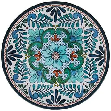 Show moreElevate your dining experience with the exquisite Certified International Talavera Salad/Dessert Plates, designed by renowned artist Nancy Green. This set of six stunning 9-inch plates is crafted from heavyweight melamine, ensuring durability and longevity, whether it’s used for casual family dinners or formal gatherings. Each plate features vibrant, cheerful designs that promise to inject a burst of color into your table setting, making them the ideal choice for summer picnics, festive celebrations, or everyday meals.