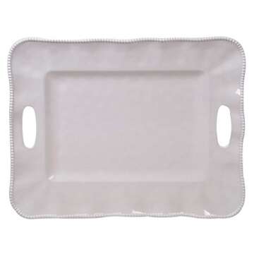 Certified International Perlette Cream Rectangular Tray withHandles 19" x 15" Servware, Accessories,Hostess Serving