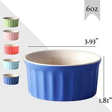 Show moreIntroducing the Cestash 6 Oz Ceramic Ramekins, a stunning set of five versatile porcelain baking bowls that add a pop of color and elegance to your culinary adventures! These ramekins are masterfully crafted from high-quality, heavy-duty porcelain, ensuring durability and longevity in your kitchen. Their delightful pastel hues not only complement your dining decor but also elevate the presentation of any dish, from savory soufflés to tempting crème brûlées. Enjoy the perfect blend of form and function with these exceptional souffle cups, designed to make your cooking experience a pleasure.