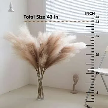 CEWOR 3pcs 43" 3.6FT Faux Pampas Grass Tall Pampas Grass for Vase Filler Artificial Pompous Grass Fake Pompass Branches Arrangement for Home, Living Room, Kitchen, Wedding, Boho Decor
