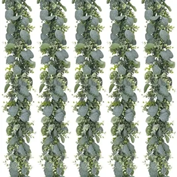 Show moreTransform your living space with the exquisite CEWOR 5pcs 5.5ft Artificial Eucalyptus Garland, an exceptional collection designed to captivate and delight. Crafted from premium silk leaves and durable plastic vines, this garland set effortlessly mimics the beauty of real silver dollar eucalyptus, providing an elegant touch to any decor without the upkeep of live plants. Each garland measures 5.5 feet long, making them perfectly versatile for creating stunning displays tailored to your space or event. The unique design features two distinct eucalyptus styles, allowing for a creative and sophisticated enhancement of your decor that captures attention without overwhelming your aesthetic.