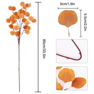 CEWOR 6pcs Fall Stems Artificial Eucalyptus Leaves 33.5in Orange Fake Eucalyptus Branches Autumn Wedding Decorations for Table Home Fireplace Farmhouse Bathroom Floral Arrangement Decor