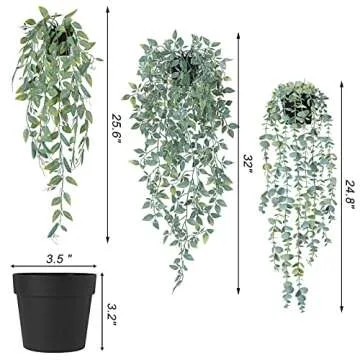 CEWOR Fake Hanging Plants, 3 Pack Artificial Hanging Plants Fake Potted Greenery Plants Artificial Eucalyptus Vine, Mandala Vine in Pot for Home Room Indoor Outdoor Shelf Decor
