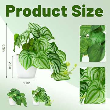 Show moreTransform your living space into a vibrant oasis with the CEWOR Fake Plants 2 Packs! Create a perfect balance of elegance and charm with these stunning artificial greenery options. Designed to mimic the beauty of real plants, these lifelike additions come in two distinct styles: a plain green model and a model adorned with a beautiful floral pattern, all housed in chic white plastic pots. Standing at an appealing height of 6.3 inches, these pots fulfill the ideal dimensions for effortless placement across various rooms or settings.