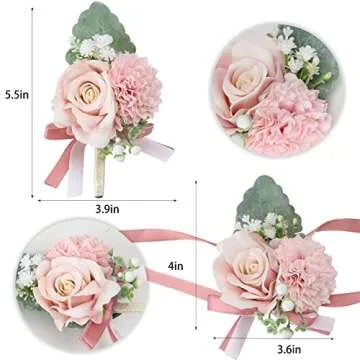 CEWOR Elegant Pink Wrist Corsage and Boutonniere Set for Weddings and Events