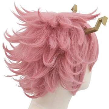 Cfalaicos Short Pink Wigs For Women Synthetic Hair Fancy Dress with 2 Horns