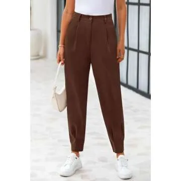 CFLONGE Women's Work Pants with Pockets High Waist Tapered Slacks Ankle Length Pants Pleated Trousers for Women Summer 2024(Coffee,XX-Large)