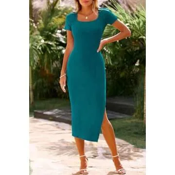 Show more Introducing the CFLONGE Women Summer Dress, a quintessential blend of style and comfort that is perfect for any occasion. This dress, crafted with lightweight and stretch knitted ribbed fabric, features a unique ribbed texture that not only flatters your silhouette but also ensures breathability during warm summer days. Available in rich hues including the stunning Dark Green, it seamlessly transitions from casual daywear to evening elegance. With its short sleeves and high slit design, this maxi dress is both sexy and sophisticated, making it a must-have in your summer wardrobe.