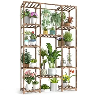 Show moreEnhance your living space with the cfmour Plant Stand Indoor Outdoor, an exceptional solution for plant enthusiasts who wish to showcase their greenery in a stunning and organized manner. With a remarkable height of 62.2 inches and a capacity to accommodate 12 normal-sized plants, this aesthetically pleasing wood plant shelf is designed to bring nature indoors or create an inviting patio atmosphere. Crafted from premium natural wood, every piece undergoes a unique high-temperature carbonization process, rendering it water and heat resistant, while maintaining longevity for years of enjoyable use.