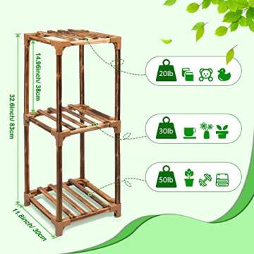 Introducing the cfmour Wood Plant Stand Indoor – a beautifully crafted 3-tier plant shelf that seamlessly integrates functionality and style into your living space. Made from 100% solid eucalyptus wood, this eco-friendly plant stand is not just a decorative piece but a robust solution for organizing your plants and decor. The high-temperature carbonization process (up to 300℃) significantly reduces moisture absorption by 50% and enhances the wood's durability, ensuring...
