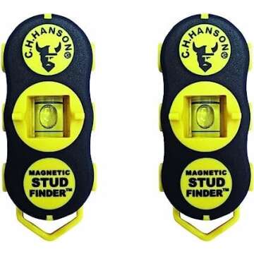 Experience a revolutionary approach to wall stud discovery with the CH Hanson 03040 Magnetic Stud Finder - 2 Pack. This tool redefines reliability and ease for both beginners and seasoned DIY experts. Crafted for ultimate comfort, it features a soft grip handle that ensures a secure hold, allowing you to navigate your walls effortlessly. Compact in design, these stud finders fit perfectly in your pocket, making them the ideal companion for projects at home or on the go.
