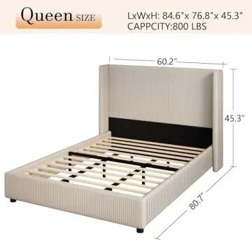 CHABUILDREARK Queen Size Bed Frame, Velvet Upholstered Bed Frame with Vertical Channel Tufted Headboard, Low Profile Bed Design, No Box Spring Needed, Easy Assembly, Beige