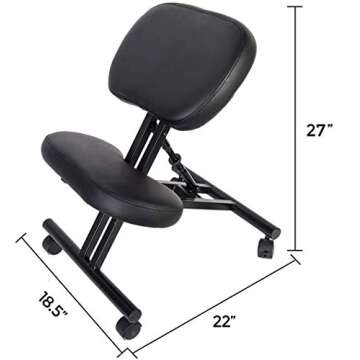 CHADIOR Ergonomic Kneeling Chair for Home Office,Adjustable Stool for with Thick Foam Cushions and Smooth Gliding Casters, Improve Posture and Relieve Back Pain, Black