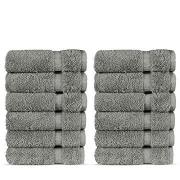 Chakir Turkish Linens 100% Turkish Cotton Luxury Hotel & Spa Washcloth Set (Set of 12, Gray)