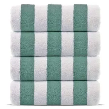 Show moreDiscover the unparalleled comfort and luxury of the Chakir Turkish Linens Premium Quality 100% Cotton Turkish Cabana Thick Stripe Pool Beach Towels 4-Pack. Crafted with exquisite attention to detail from 100% high-quality cotton, these towels redefine what it means to experience the great outdoors. With generous dimensions of 30 by 60 inches, each towel offers a lavish embrace after a refreshing swim or a day spent lounging on the sand. The plush texture invites you to indulge in comfort, making every beach or pool visit feel like a lavish getaway.