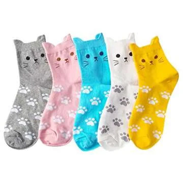 Chalier 5 Pairs Womens Funny socks Cozy Cute Printed Patterned Fun Socks Novelty Cat Socks for Women Gifts