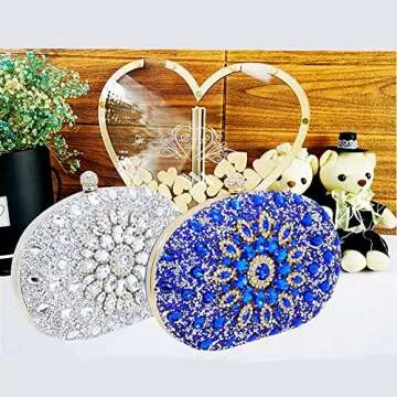Chaliwini Silver Purses For Women Evening Rhinestone Bag Clutches for Bridal Wedding Crystal Flower Handbag (773Silver)