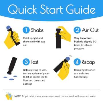 Show more Unlock a world of creativity and fun with our exceptional set of dot markers, designed specifically for young artists! This vibrant kit features 10 dab markers filled with a generous 2 fl oz (60ml) of colorful, water-based ink that dries quickly and washes off easily, ensuring a mess-free crafting experience. These markers not only promote artistic expression but also help children master their ABCs, numbers, and shapes through the included FREE 50-page activity book, making learning engaging and enjoyable.