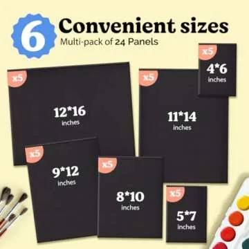 Chalkola Black Canvases for Painting (24 Pack, Black Canvas Panels) | 4x6, 5x7, 8x10, 9x12, 11x14, 12x16 inch (4 Each) - Painting Canvas are 100% Cotton, Primed, Acid Free, Blank Art Boards