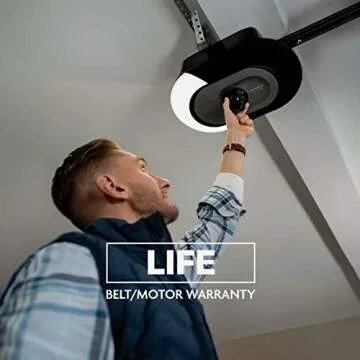 Show moreThe Chamberlain B4643T Smart Garage Door Opener is a remarkable innovation that brings true convenience and security to your home. With its integrated 140⁰ wide angle camera, you can effortlessly monitor activities in your garage from anywhere using the advanced myQ app. This seamless smartphone control feature enables you to operate, secure, and check in on your garage with just a few taps on your device, ensuring peace of mind no matter where you are. Not only does it offer exceptional access control, but it also delivers hefty functionality with its powerful ultra-quiet DC motor and strong belt drive that guarantees a smooth operation, keeping your living spaces undisturbed.