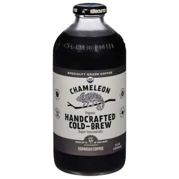 Show moreIndulge in the ultimate coffee experience with our Chameleon Organic Espresso Cold Brew Coffee Concentrate, beautifully presented in a 32 fl oz glass bottle. This organic cold brew offers coffee aficionados a chance to enjoy the rich, robust flavors of espresso with supreme convenience. Each serving is a guilt-free delight, containing only 15 calories, making it the perfect choice for health-conscious coffee lovers who refuse to compromise on taste. Whether you're in a rush or enjoying a leisurely moment, this versatile espresso concentrate is ready to serve you a refreshing iced coffee in seconds!