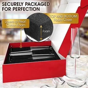 But these aren’t just any champagne flutes; they embody sophistication and luxury, crafted to enhance the flavors of your favorite bubbly and even mimosas! Each set comes beautifully packaged in a gift box, making it a perfect present for weddings, anniversaries, or housewarmings. Experience the joy that comes with raising a glass to toast special moments, while enjoying the peace of mind that comes from quality craftsmanship.
