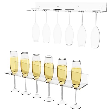 Show moreThe Champagne Wall Holder is more than just a functional piece—it's a stunning addition to your home décor that will impress every guest. Constructed from premium quality acrylic, this wall-mounted wine glass holder is designed to beautifully display your cherished stemware while keeping it within easy reach. Imagine the elegance of showcasing your favorite wine glasses or champagne flutes, elegantly protected from dust and scratches. Perfect for transforming any kitchen wall, home bar, or gathering space, this drink glass holder creates an inviting atmosphere for both family and friends.