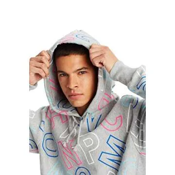 Champion Sweatshirt Reverse Weave, Hoodie for Mens, Multiple Graphics, Oxford Gray Heather/Word SOP C2-551280, Small