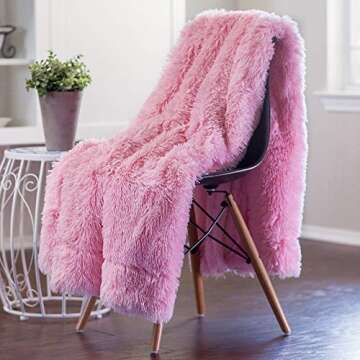 Chanasya Premium Wolf Faux Long Fur Throw Blanket - Soft, Fuzzy Throw Blanket - for Bed or Couch - 50" x 65” - Pink