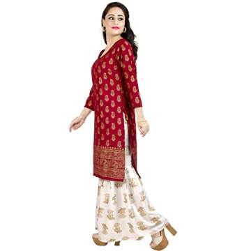 Chandrakala Kurti Sharara Set For Women Rayon Tunic Suit Sets Indian Summer Dress Red-White,X-Large (K163RED4)