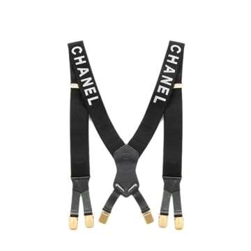 Chanel, Pre-Loved Black Elastic Logo Suspenders, Black