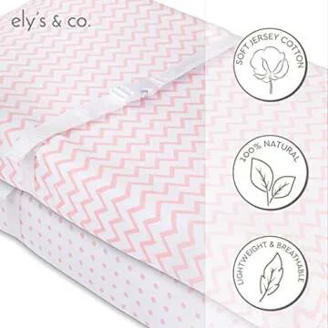 Show more Mommies and daddies, meet the Changing Pad Cover 2 Pack – your essential companion for keeping your baby’s changing station chic and comfortable! Crafted from 100% jersey cotton, this set features delightful designs, including pink and white chevron and polka dots, ensuring that style meets functionality. Perfectly designed to make diaper changes smooth sailing, these covers are gentle against your baby's skin, allowing for a cozy and irritation-free changing experience. The durable fabric guarantees longevity, while the playful patterns add a fun touch to your nursery decor.